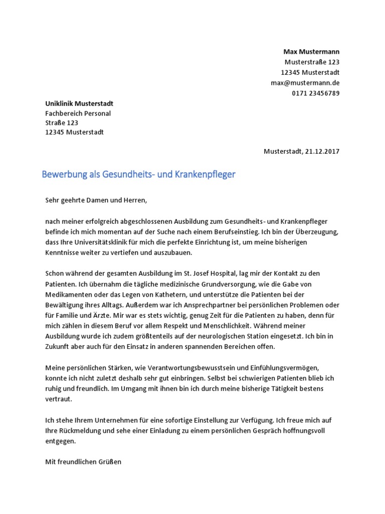 Bewerbungsschreiben gesundheits und krankenpfleger hier siehst du ein beispiel für die bewerbung zum gesundheits und krankenpfleger.